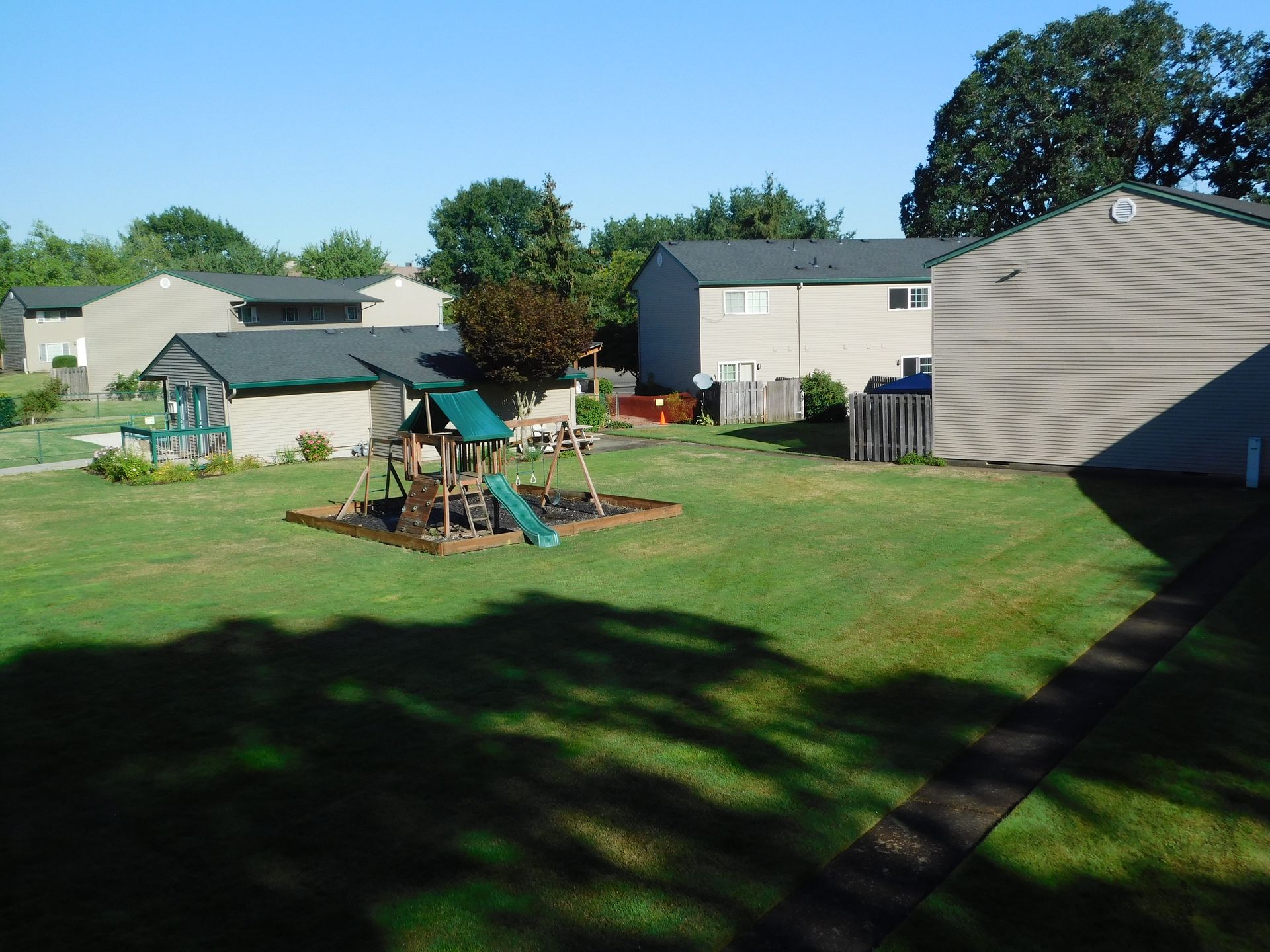 Find yourself at home among sprawling green lawns and beautiful mature trees at Lakeside Apartments near Linn-Benton Community College. Our two bedroom townhomes in Albany, Oregon, are designed to meet your needs for style and function, inside and out. Spend a relaxing afternoon enjoying the seasonal pool, then have a cookout at the outdoor BBQ area. When you head inside your new home you will enjoy warm wood-style vinyl plank flooring and a spacious layout that’s perfect for settling in and getting comfortable. When it comes to enjoying the neighborhood, you cannot beat our proximity to Swan Lake and Waverly Park.